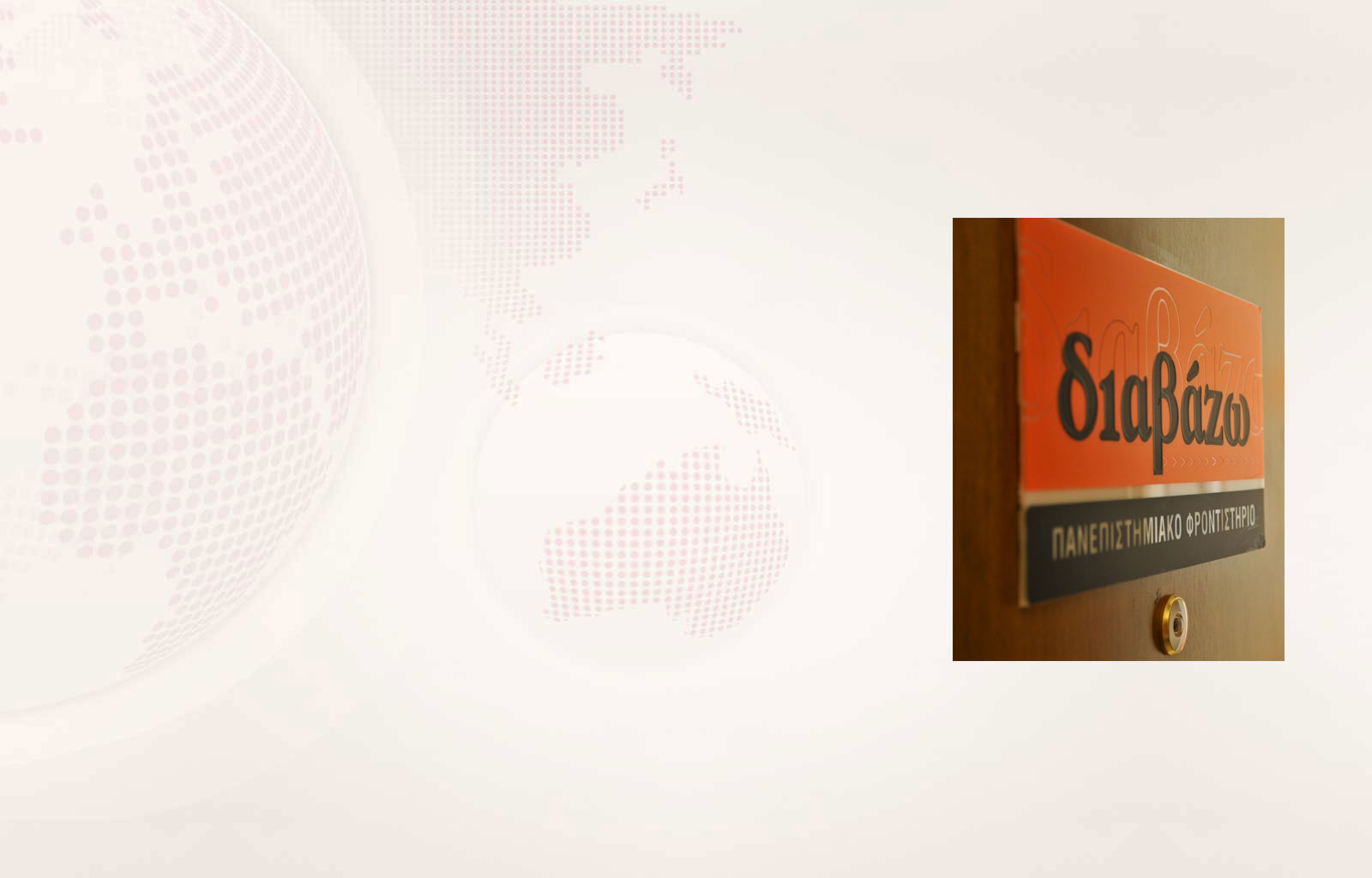 Το Πανεπιστημιακό Φροντιστήριο “διαβάζω” είναι Φροντιστήριο Ανώτατης Εκπαίδευσης. Μεταφέρθηκε στις νέες μας εγκαταστάσεις και θα λειτουργεί από 1η Μαϊου στην οδό Εγνατίας 116, στον 2ο όροφο, στάση Αγίας Σοφίας, στο κέντρο της Θεσσαλονίκης. Λειτουργεί σε πλήρως ανακαινισμένο χώρο, με υπεύθυνο εκπαίδευσης πολυετούς εμπειρίας και εξειδικευμένους συνεργάτες όλων των ειδικοτήτων.